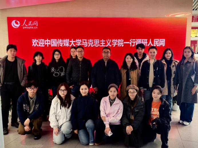人民网运营部总监张俊成、移动内容部副主任熊旭、移动内容部教育频道主编孙竞和传播内容认知全国重点实验室科研管理部主任郭筱凤带领师生们深入了解了人民网的组织架构、业务布局、品牌矩阵、技术平台及近年来取得的成果。