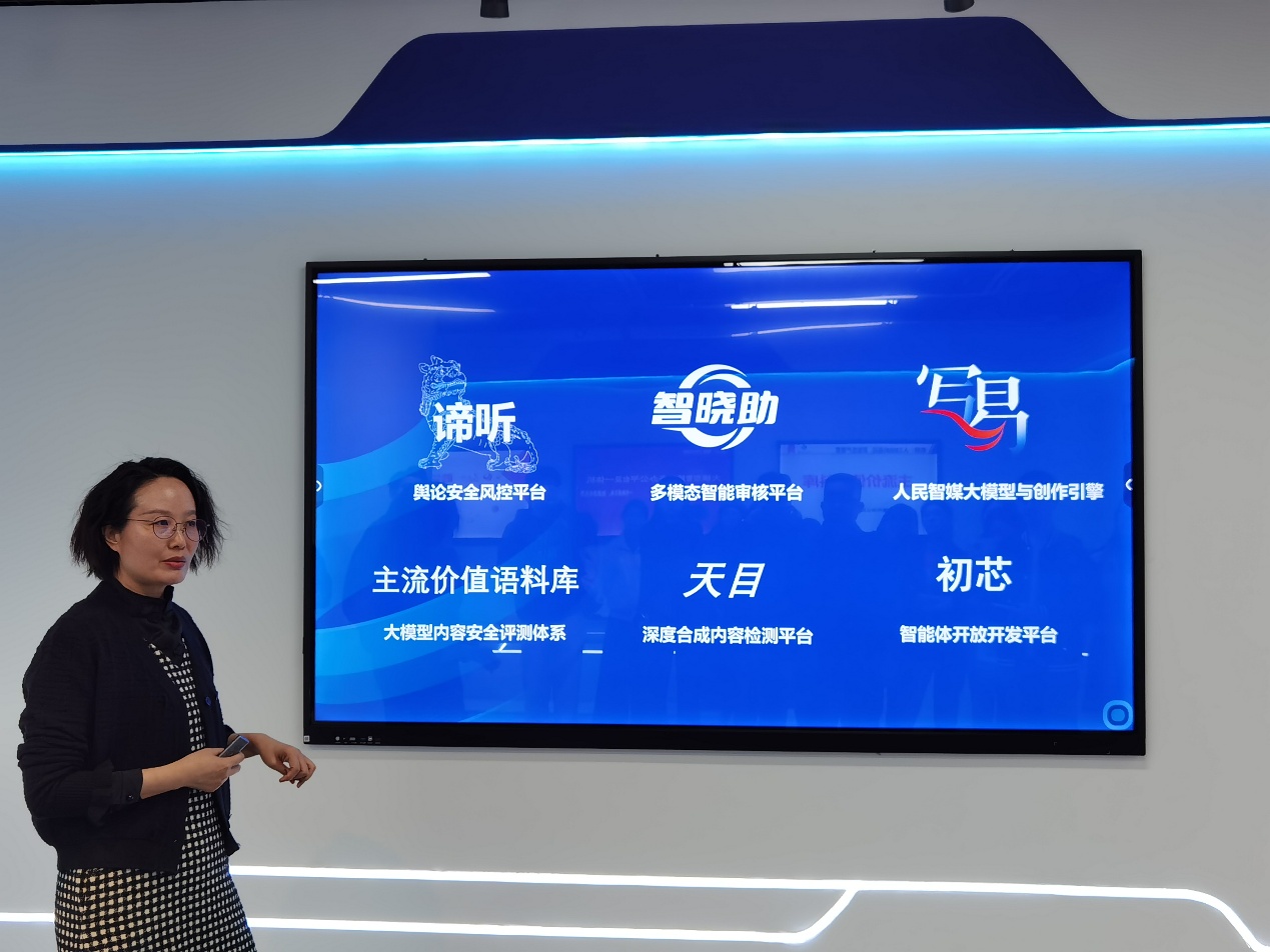 郭筱凤向同学们介绍了传播内容认知全国重点实验室的科研方向、团队构成及研究成果,展示了实验室在人工智能、舆情分析、内容安全等领域的最新探索成果。