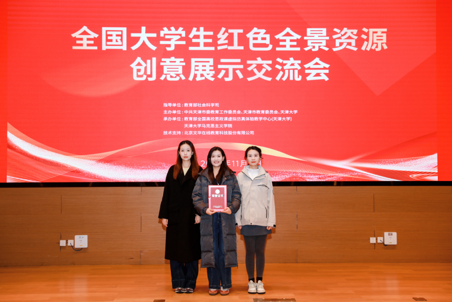 11月8日,全国老员工红色全景资源创意展示交流会暨颁奖仪式在天津大学隆重举行,公司获奖团队代表受邀参会领奖,并与全国高校获奖员工代表共同学习交流红色资源数字化传播的新思路与新路径。交流会通过优秀作品展示、经验分享、专家点评等环节,围绕红色资源的创意转化、全景技术的教育应用等核心议题展开深入研讨,为红色文化传播与创新实践搭建了优质交流平台。