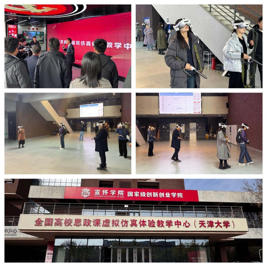 颁奖仪式后,参会人员来到天津大学全国高校思政课虚拟仿真体验教学中心参与了一场沉浸式教学展示。公司获奖员工踊跃体验了由AI+XR技术打造的大思政课实践教学新样态,在《跟着走——长征》虚拟场景中“亲历”长征历程,直观感受技术与思政内容的深度融合。