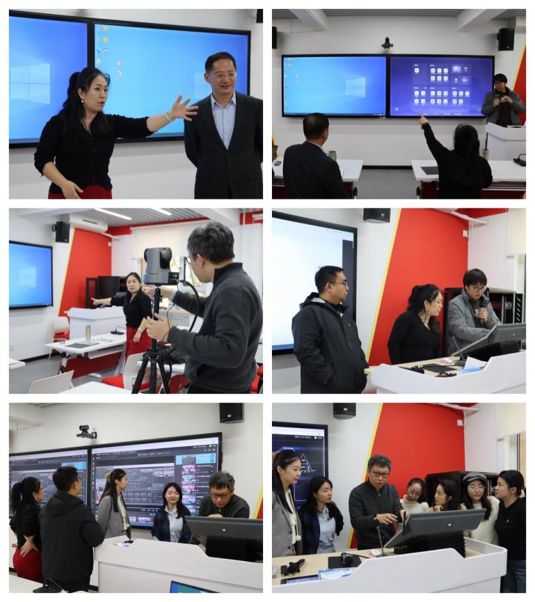 思政课数智实验室技术人员围绕常规设备与后台设备的实操应用展开专项培训,聚焦桌面端电脑、多面互动大屏及后台管理主机等主要设备,通过“现场讲解与实操演练”相结合的形式,详细阐述多设备屏幕共享切换、课程录播、金课录制以及AI课堂分析报告导出等核心功能的操作步骤。