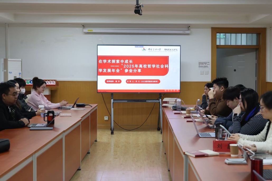 交流分享环节,研三员工买凡率先登场。她以携论文入选2025年高校哲学社会科学发展年会的经历为蓝本,复盘了从论文投稿到参会交流的全流程心得。她提出,“精准定位与细节为王”是投稿成功的关键,既要以敏锐的选题嗅觉捕捉学科前沿与实践需求,又要严守论文格式规范筑牢学术根基。在创作核心上,她鼓励学弟学妹坚守“学术自信”与“学术创新”,既要甘于坐“冷板凳”深耕理论,又要立足思政学科特性强化实践指导价值。“多和老师、同学沟通破解信息差,先行动再完善,方能收获成长”,她的真诚分享引发全场共鸣。