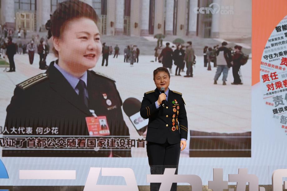 第十四届全国人大代表、全国五一巾帼标兵、北京市劳动模范、公交103路驾驶员何少花讲述了自己在一线驾驶岗位上用方言与手语为乘客搭建起暖心桥梁的故事。这位土生土长的北京大姐,因一次语言不通导致乘客误车的遗憾,立志成为“沟通桥梁”。她利用休息日扎根菜市场向商户学方言,熟练掌握陕西话、山西话等常用方言;同时苦练手语技能,通过手势与口型的默契配合,实现与听障乘客的无障碍交流,用17年坚守践行“人民选我当代表,我当代表为人民”的誓言。