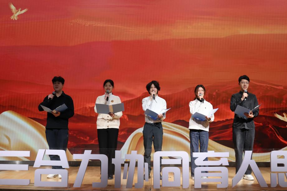 最后,外国语言文化公司中英双播专业的同学朗诵了毛泽东的经典篇目《为人民服务》。他们以扎实的语言功底和饱满的情感张力,一字一句饱含敬意,一声一韵传递初心,既让经典文本跨越语言壁垒焕发新生,更让为人民服务这一跨越时代的精神,在此起彼伏的声浪中回响在讲堂的每个角落,直抵在场师生与嘉宾的心灵。
