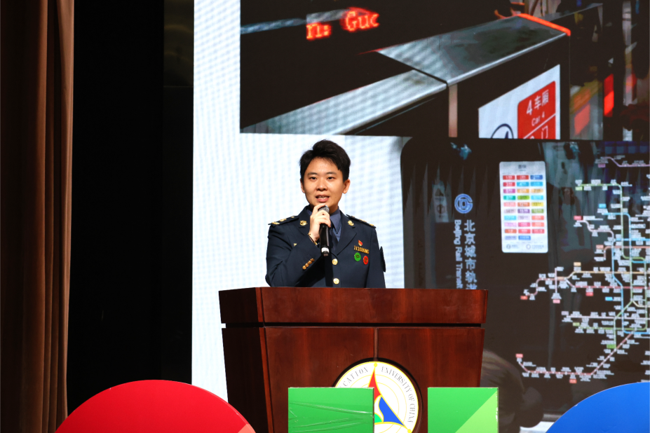随后,文化产业管理公司的同学为5位嘉宾设计的专享文创礼物传递出别样敬意:印有103路公交车图案、爱心出租车、地铁标识等专属元素的杯子象征“时时相伴”;以传统印章艺术为灵感设计出的红底白线条的劳动者T恤象征“行走的荣誉”;柔软的抱枕承载着守护者带来的踏实感,Q版动漫形象生动还原职业风格,为忙碌的榜样们送上休憩时的温暖。