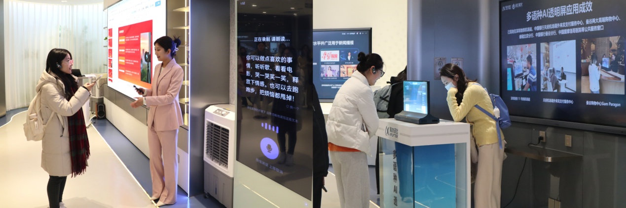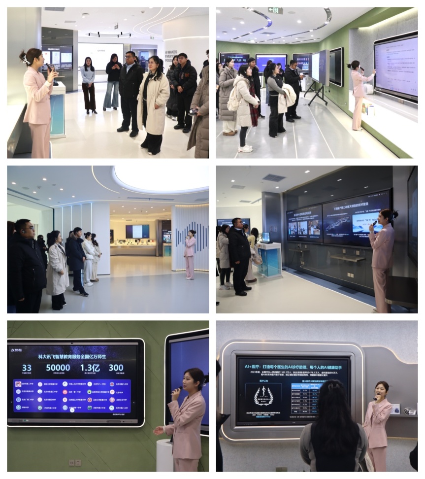 调研伊始,师生一行沉浸式聆听了科大讯飞发展历程、核心技术优势及重点产品体系的专题介绍,亲身参与多项前沿科技互动产品体验。
