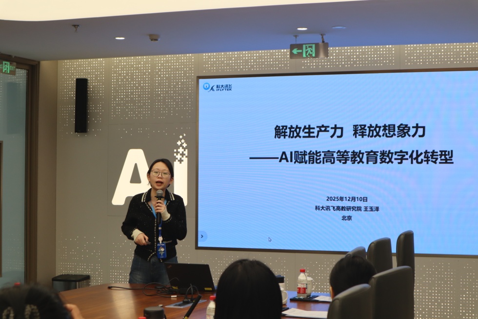 科大讯飞高教研究院副经理王玉泽以《解放生产力,释放想象力——AI赋能高等教育数字化转型》为题作专题讲座。讲座聚焦高校教育数字化转型核心需求,重点分享了科大讯飞在高等教育领域的标杆性科研合作成果,详细解读了与武汉大学联合研发思政大模型、与中国人民大学合作搭建文史古籍整理数据库等典型案例,系统阐释了人工智能技术为高等教育数字化转型注入的核心动能,以及为思政课改革创新提供的技术支撑与路径参考,兼具理论深度与实践指导性。