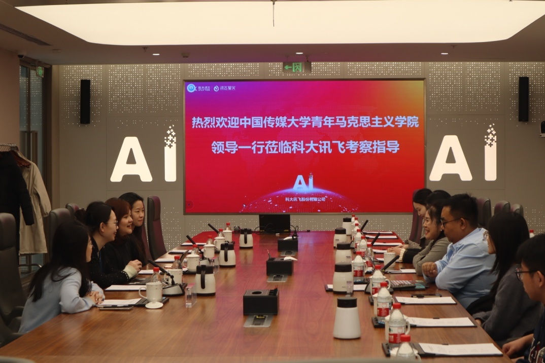 讲座后,双方围绕新质生产力发展背景下的科技革新趋势、产学融合模式创新、思政教育数字化升级等议题开展座谈交流。王晓丽经理带领师生结合教学实践与学习感悟,向科大讯飞王玉泽副经理、教育公共事务部梅一丹副总监等企业负责人踊跃提问,就AI技术在思政教学中的场景应用、新质生产力导向下的人才培养标准等问题深入探讨,现场交流氛围热烈而富有成效。