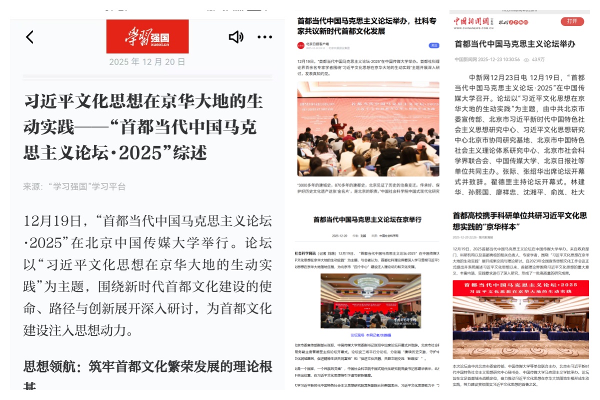 本次论坛得到《学习强国》学习平台、北京日报、中国新闻网等主流媒体的高度关注和全程报道,彰显了论坛的学术价值与社会影响力。