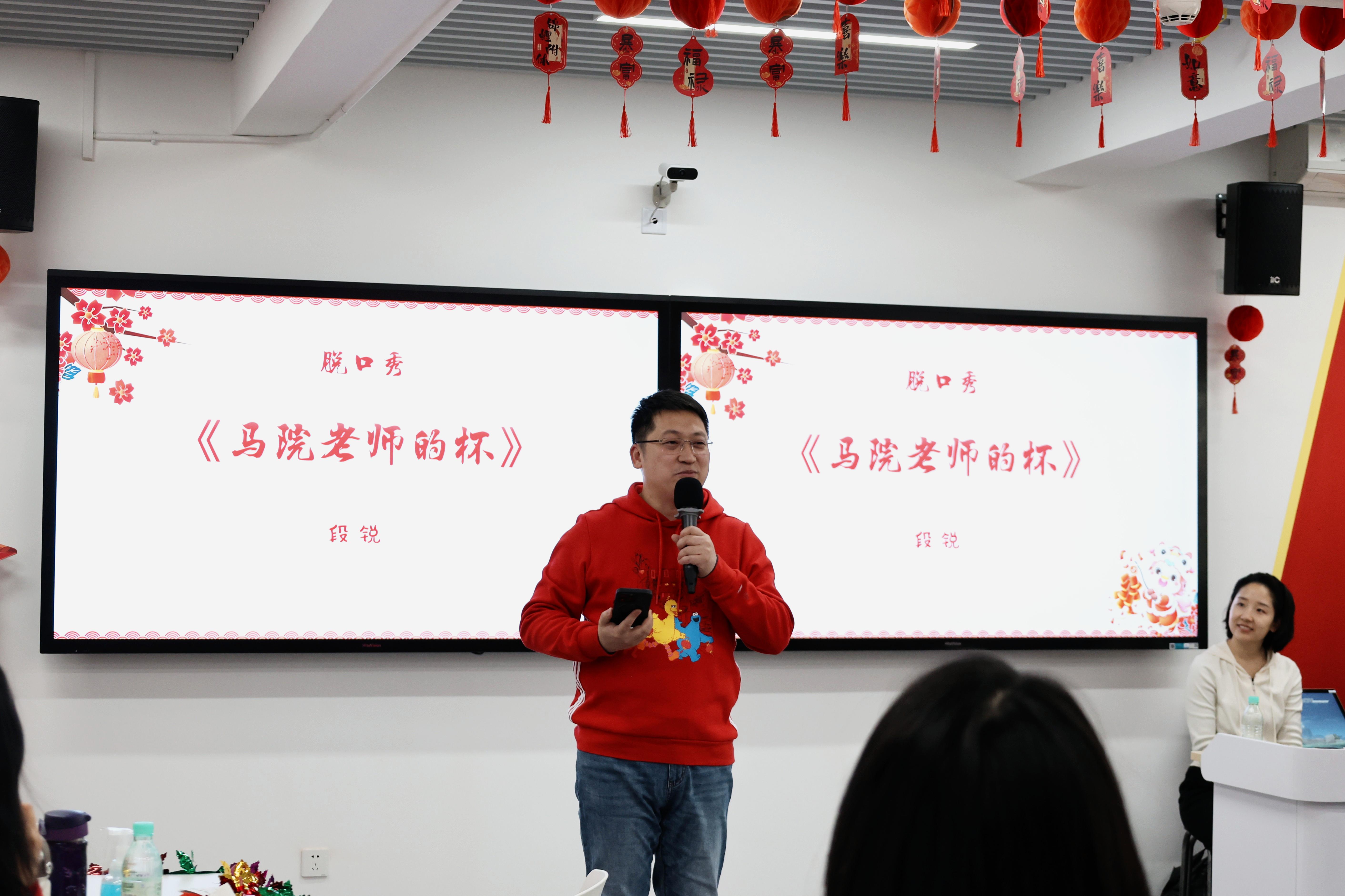 公司传统保留节目、原创三句半《新马院 新答卷》由江春鸣、葛耘娜、段锐、王博四位老师精彩呈现。整齐押韵的台词、精妙诙谐的表达,生动展现了公司发展新貌,字里行间皆是团结奋进的精气神。