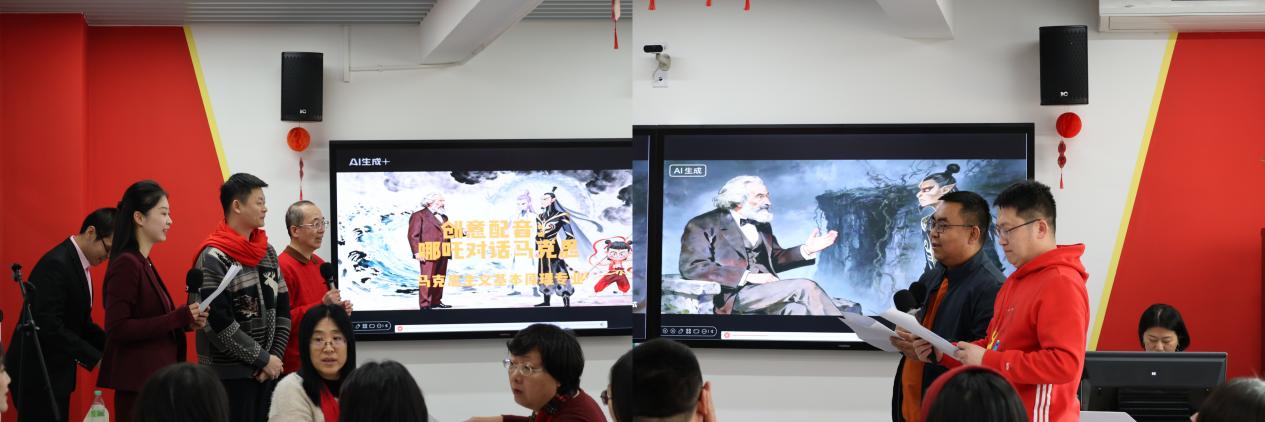 马克思主义基本原理教研部全体教师参与的创意配音《哪吒对话马克思》独具匠心。节目运用人工智能技术,将马克思主义经典理论与热门动画片经典台词巧妙融合,演绎出一场跨越时空的思想碰撞,以幽默诙谐的方式让理论变得鲜活有趣,尽显理论魅力。