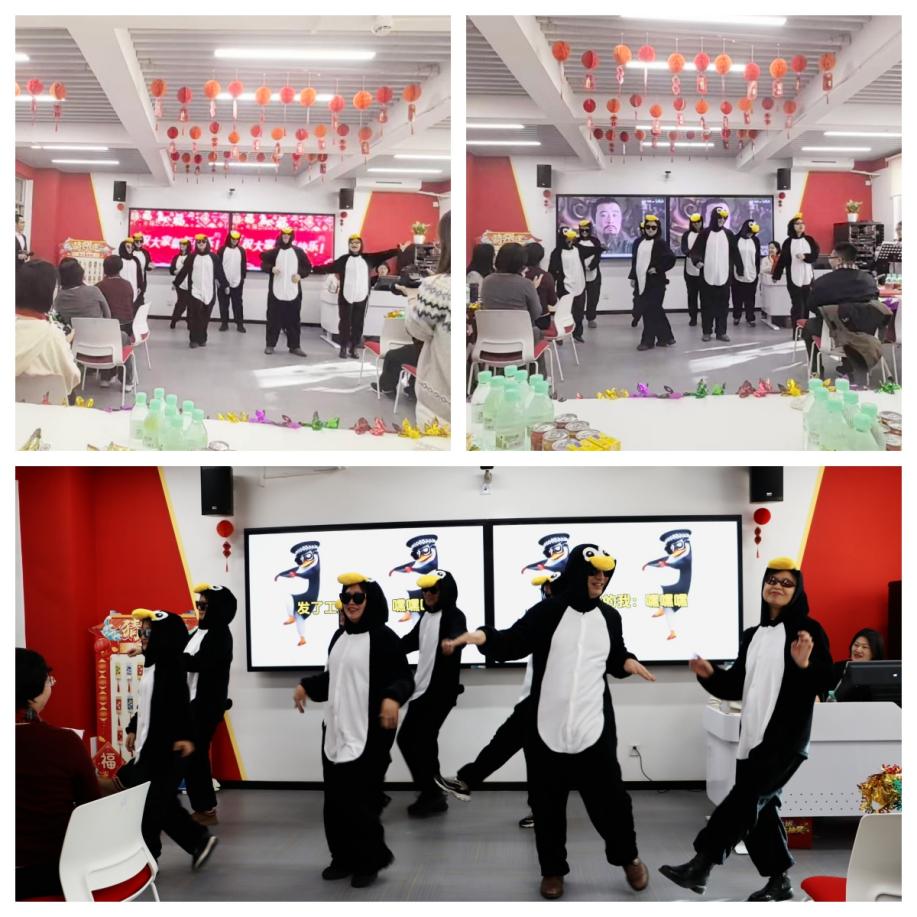 联欢会在思想政治教育教研部的集体开场舞《高雅人士》中正式拉开序幕。老师们身着企鹅款式连帽睡衣、佩戴墨镜,用幽默的动作搭配魔性旋律,将呆萌、优雅与疯狂的风格巧妙融合,瞬间点燃全场热情,为活动奠定了喜庆欢快的基调。