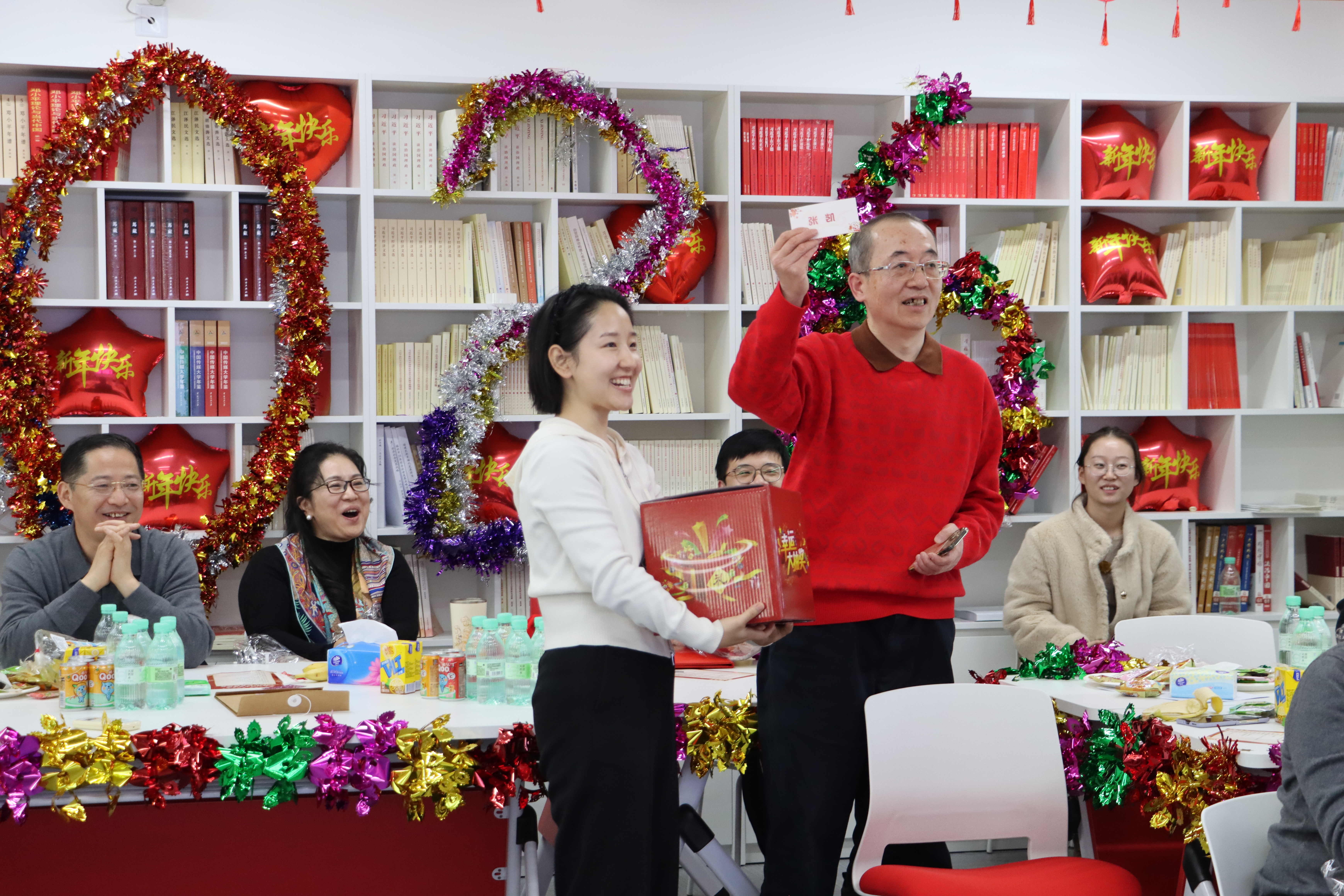 联欢会上,揭榜猜谜、幸运抽奖等环节让现场充满智慧与惊喜。
